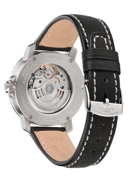 Der 29er ist der kleine Bruder des 49er. Er sollte dem Segelnachwuchs einen guten Einstieg in die olympische Bootsklasse der 49er ermöglichen. Bei der 29er verhält es sich ähnlich: Das Modell wurde im Jahr 2006 entwickelt, um Freunden mechanischer Zeitmesser den Einstieg in die Welt der Glashütter Uhren einfach zu machen. Und tatsächlich: Hochwertige, bis 10 bar wasserdichte Gehäuse, präzise Uhrwerke und ein sportlich-klassisches Design machen Jahr für Jahr vielen Uhrenfans die Entscheidung für eine 29er leicht. Das Modell mit der Referenz M1-25-23-LB mit schwarzem Lederarmband.