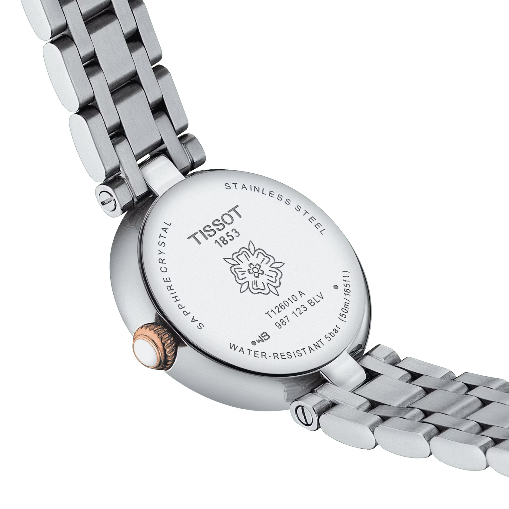Die Tissot Bellissima Small Lady T126.010.22.013.00 besitzt ein Swiss Made Quarzwerk sowie kratzfestes, gewölbtes und entspiegeltes Saphirglas. Römische Ziffern, die kleine Datumsanzeige bei 6 Uhr und der weiße Cabochon auf der Krone verleihen der Tissot Bellissima Small Lady eine elegante Optik.