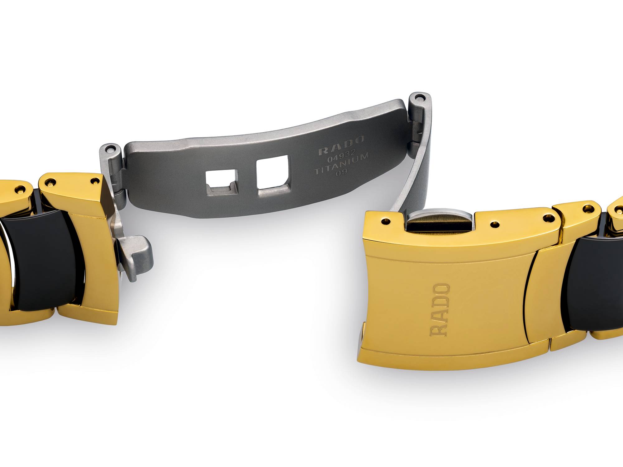 In einem patentierten Verfahren, das von Rado als erstem Hersteller eingesetzt wurde, wird Hightech-Keramik bei extrem hohen Temperaturen in einem Ofen erhitzt. Bei 20.000 °C aktivierte Gase wandeln die fertige weiße Keramik in ein einzigartiges Material mit nahezu außerirdischem Metallic-Glanz um, der ganz ohne den Einsatz von Metall erreicht wird. In einem Prozess, der modernen Alchemiekünsten gleichkommt, wird die Farbe der Keramik verändert, ohne dabei ihre zugrunde liegenden Eigenschaften – leichtes Gewicht, Härte und Tragekomfort – zu beeinträchtigen.