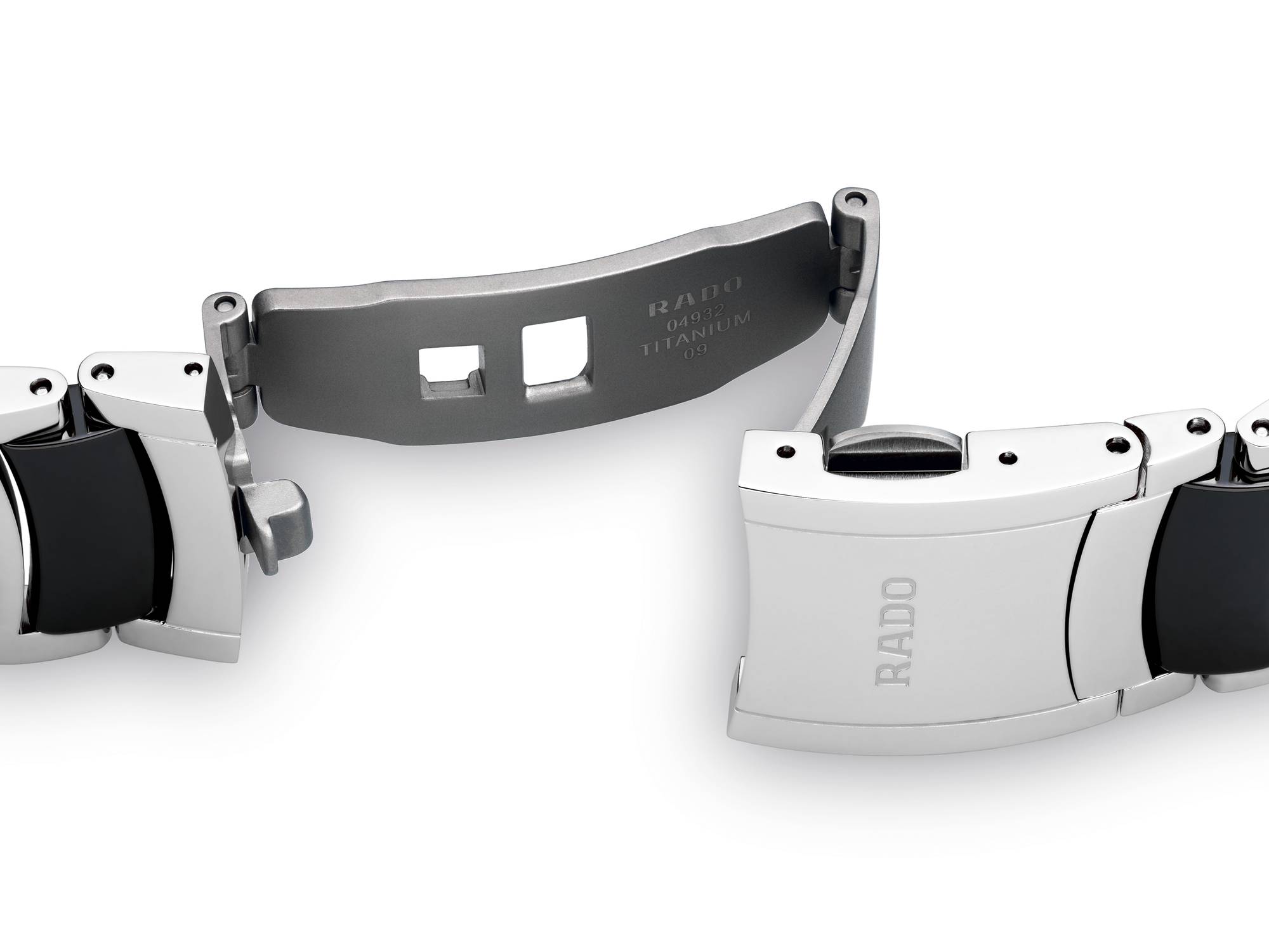 In einem patentierten Verfahren, das von Rado als erstem Hersteller eingesetzt wurde, wird Hightech-Keramik bei extrem hohen Temperaturen in einem Ofen erhitzt. Bei 20.000 °C aktivierte Gase wandeln die fertige weiße Keramik in ein einzigartiges Material mit nahezu außerirdischem Metallic-Glanz um, der ganz ohne den Einsatz von Metall erreicht wird. In einem Prozess, der modernen Alchemiekünsten gleichkommt, wird die Farbe der Keramik verändert, ohne dabei ihre zugrunde liegenden Eigenschaften – leichtes Gewicht, Härte und Tragekomfort – zu beeinträchtigen.