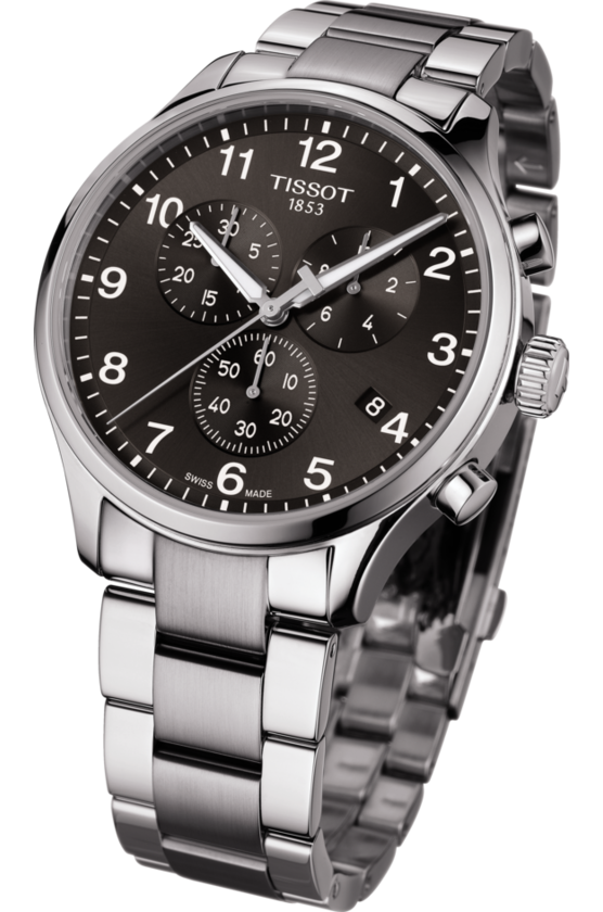 Der Tissot Chrono XL ist eine neue Produktline innerhalb der Tissot Sport Kollektion. Der Chronograph XL Classic T116.617.11.057.01 mit Swiss-Made Quartzwerk besitzt ein 316-Edelstahl Gehäuse. Das kratzfeste Saphirglas schützt das schwarze Zifferblatt mit Indizes und arabischen Ziffern, welche eine Superluminova Beschichtung besitzen. Das massive 316L-Edelstahlarmband besitzt eine Faltschließe mit Drückern. Der Gehäuse-Durchmesser von 45 mm unterstreicht das sportliche Aussehen der Tissot Chrono XL.