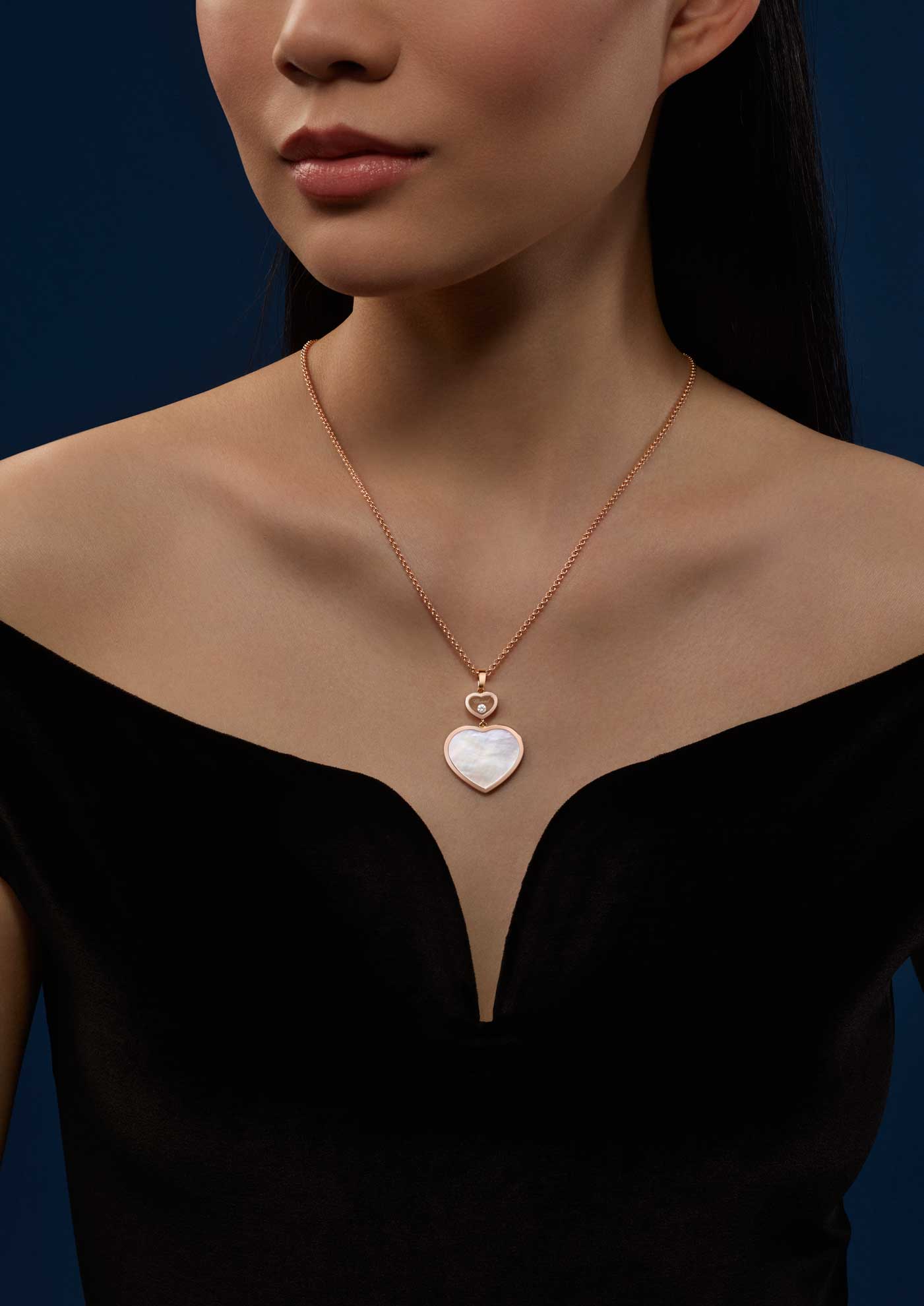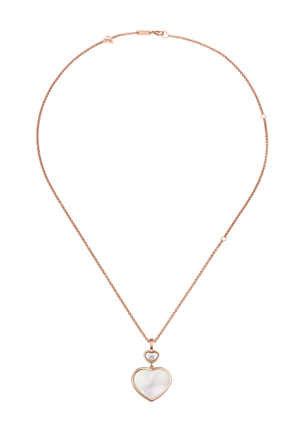 Für Chopard, das Haus mit dem großen Herzen, gehören Großzügigkeit und Freundlichkeit seit jeher zu den Grundwerten. Dazu passt das Herz als Talisman in Verbindung mit den ikonischen tanzenden Diamanten des Hauses. Beides verbindet sich im Happy Hearts Anhänger 79A075-5301 in Roségold mit Perlmutt. Er vereint großherzige Frauen auf der ganzen Welt. Little Diamonds Do Great Things