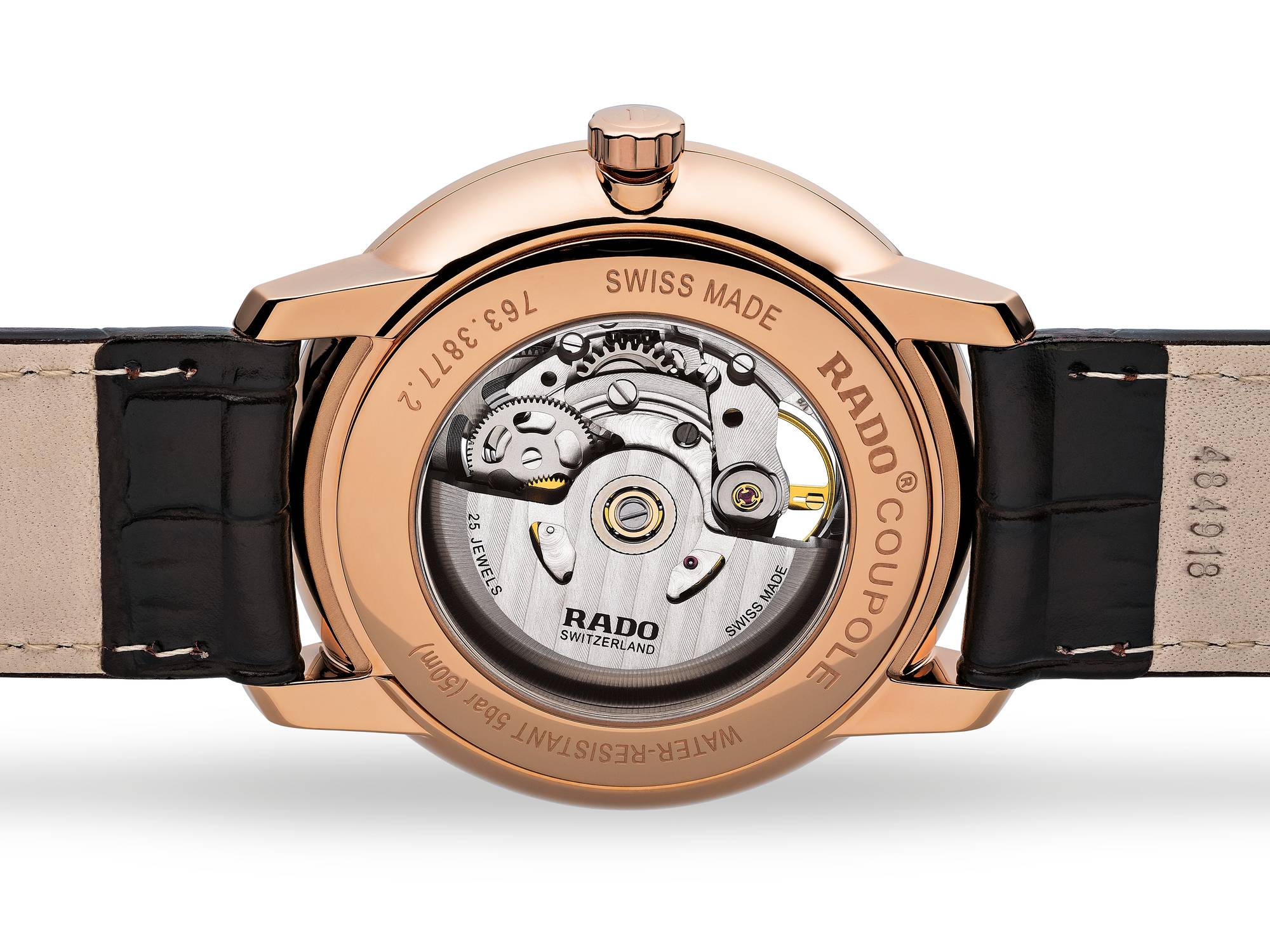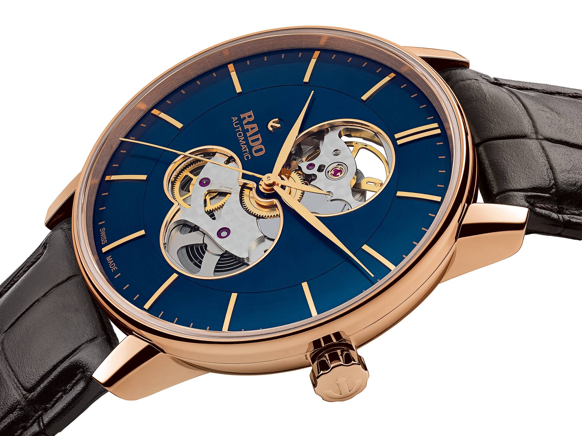Die Coupole Classic Automatic Open Heart R22895215 vereint das Design einer traditionellen Armbanduhr mit dem für Rado charakteristischen Saphirglas und garantiert so einen exzellenten Glanz, eine gute Lesbarkeit und den ultimativen Schutz für die edlen Zifferblätter. In Anlehnung an die Rado Uhren aus den 60er Jahren vereint die Coupole Classic Vintage‑Design mit modernem Know‑how. Sie ist aus Edelstahl mit PVD-Beschichtung gefertigt und verfügt über ein beidseitig entspiegeltes Saphirglas.