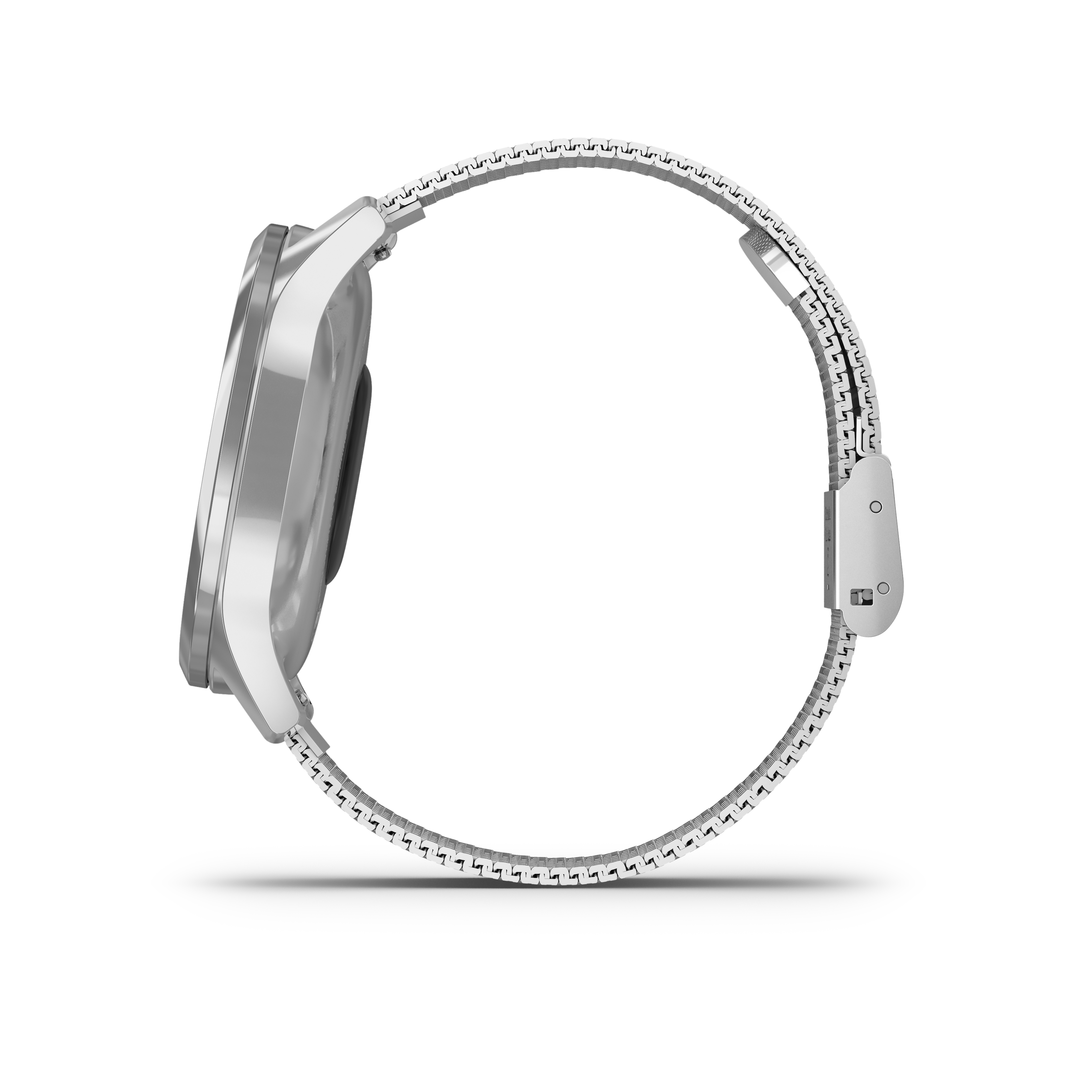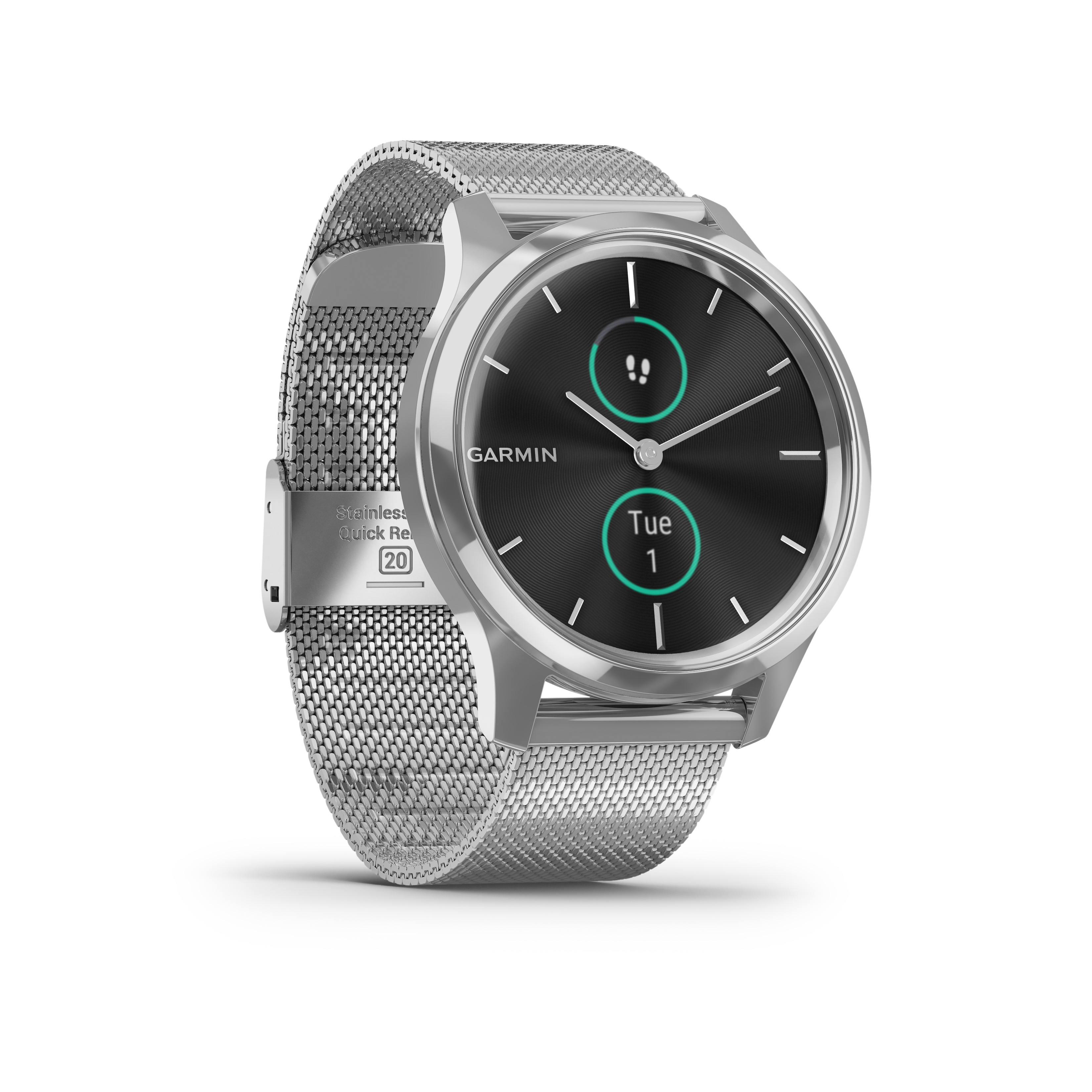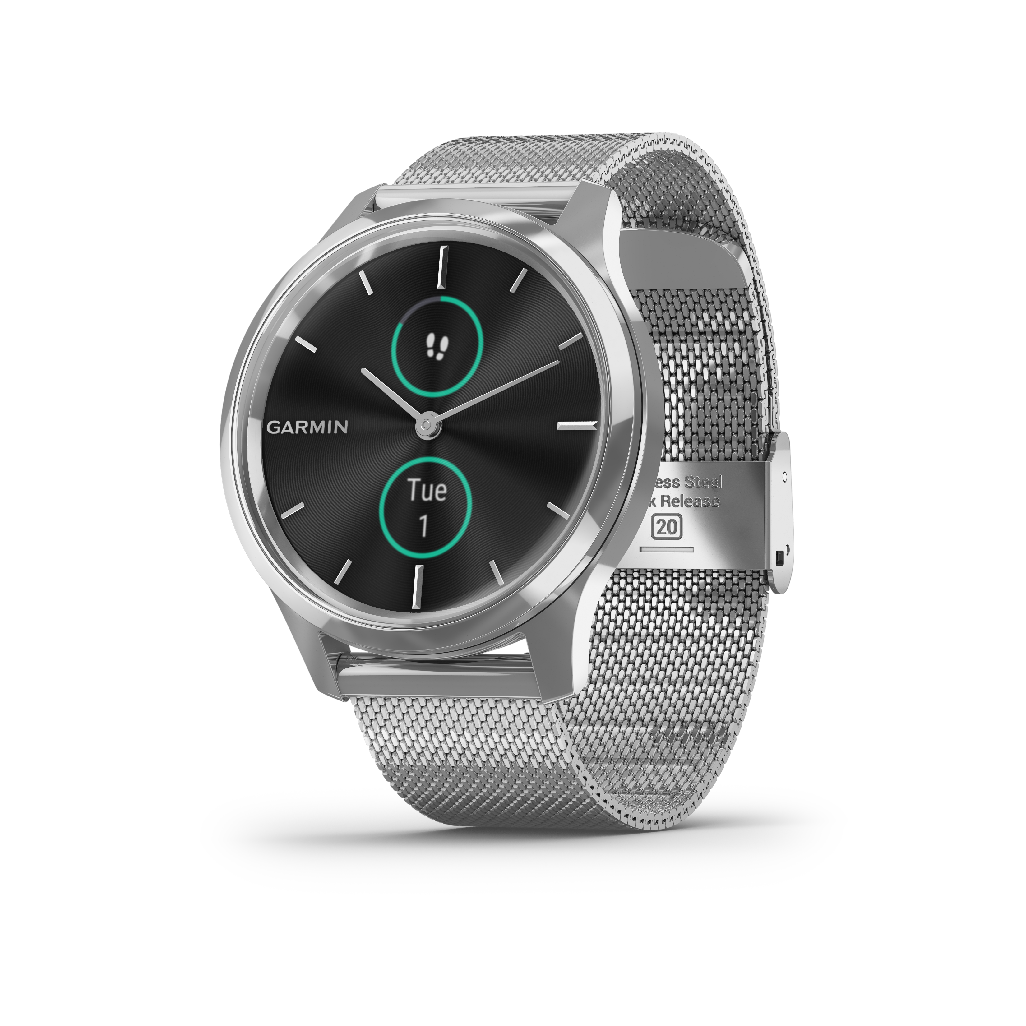 Stil und Fitness schließen einander nicht aus. Das diskrete Touchdisplay des hybriden Fitness-Trackers lässt sich sogar durch das Glas bedienen und die Uhrzeiger bewegen sich dynamisch zur Seite wenn man durch die Anzeigen für Nachrichten, Herzfrequenz und mehr streicht. Neben dem stetigen Schritte zählen und messen des Kalorienverbrauchs des Tages, gibt die vivomove HR Auskunft zum Wohlbefinden durch die ganztägige Stresslevelmessung.