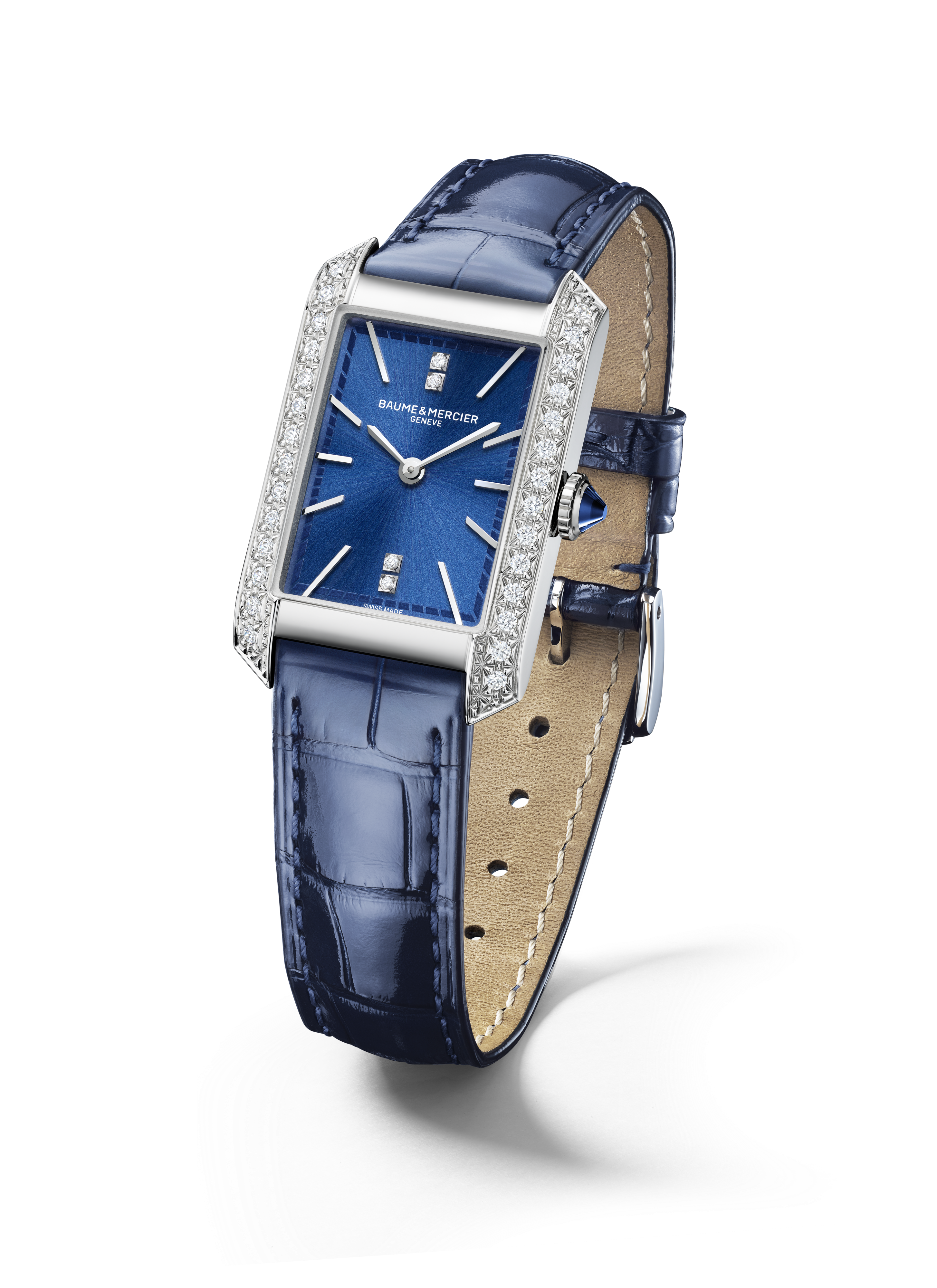 Mit seinem nachtblauen mit Edelsteinen besetzten Zifferblatt hat dieses kostbare, den Damen gewidmete Modell alles, was die Eleganz des großen Abends ausmacht. Dank ihrer schlichten, klaren Linien, die für die Kollektion und alle Zeitmesser von Baume und Mercier charakteristisch sind, lässt sie sich dank ihres unauf-dringlichen Designs auch ebenso gut am Tag tragen. Ein dekorativer Minimalismus, in dem Balance und Harmonie zum Ausdruck kommen.