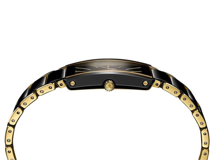 In einem patentierten Verfahren, das von Rado als erstem Hersteller eingesetzt wurde, wird Hightech-Keramik bei extrem hohen Temperaturen in einem Ofen erhitzt. Bei 20.000 °C aktivierte Gase wandeln die fertige weiße Keramik in ein einzigartiges Material mit nahezu außerirdischem Metallic-Glanz um, der ganz ohne den Einsatz von Metall erreicht wird. In einem Prozess, der modernen Alchemiekünsten gleichkommt, wird die Farbe der Keramik verändert, ohne dabei ihre zugrunde liegenden Eigenschaften – leichtes Gewicht, Härte und Tragekomfort – zu beeinträchtigen.
