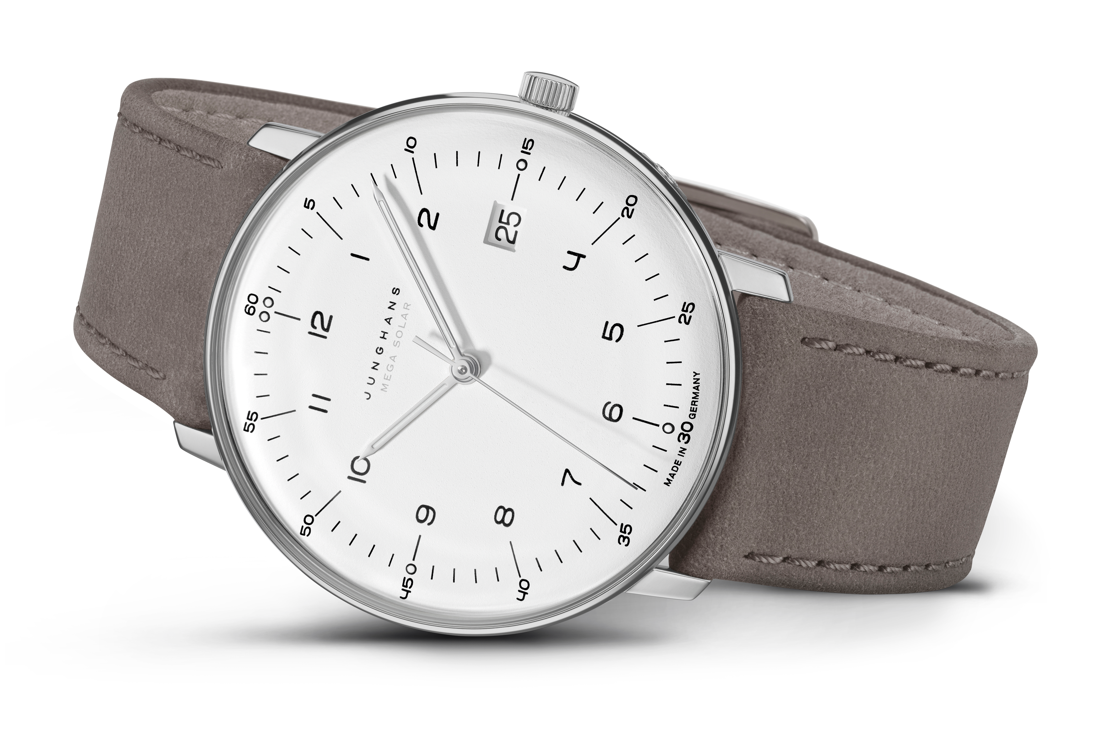 max bill MEGA Solar - Ihr minimalistisches Design bleibt immer modern, ihre Energie schöpft sie aus der Sonne. Dank des Materials Titan erlebt man die Uhr als verblüffend leicht und besonders hautfreundlich. Weiteren Komfort bieten das hochmoderne Funkwerk, ein ewiger Kalender und die einfache Einstellung der Zeitzonen per Krone oder in wenigen Sekunden mit dem Junghans eigenen Zeitsignal der Junghans MEGA App. Auch das Design der max bill MEGA Solar steht ganz im Zeichen der Nachhaltigkeit: Die Bauhaus-typische minimalistische Formensprache bleibt modern – gestern, heute, morgen und übermorgen.
