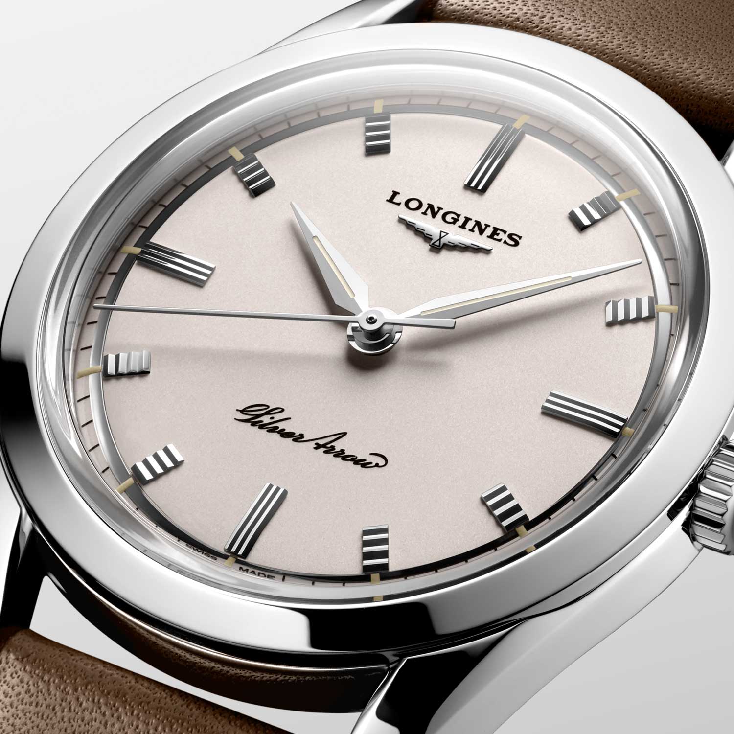 Longines verbindet mit der Silver Arrow L2.834.4.72.2 die ursprüngliche Ästhetik seiner bemerkenswertesten historischen Modelle mit den modernsten Uhrmacher-Technologien. Die Heritage-Modelle stellen eine Hommage an den Pioniergeist, der die Longines-Uhrmacher seit der Unternehmensgründung beflügelt, dar. Die Marke begleitete zahlreiche Pioniere bei ihren Spitzenleistungen in der Luft, auf der Erde und unter Wasser. Die Longines-Präzisionzeitmesser schöpfen ihr eigentliches Wesen aus diesem Fachwissen. Sie illustrieren den Fortbestand der Marke und ihr immer wieder aktualisiertes Potential, mit raffinierten und eleganten Kreationen die geschichtlichen Errungenschaften zu ehren.