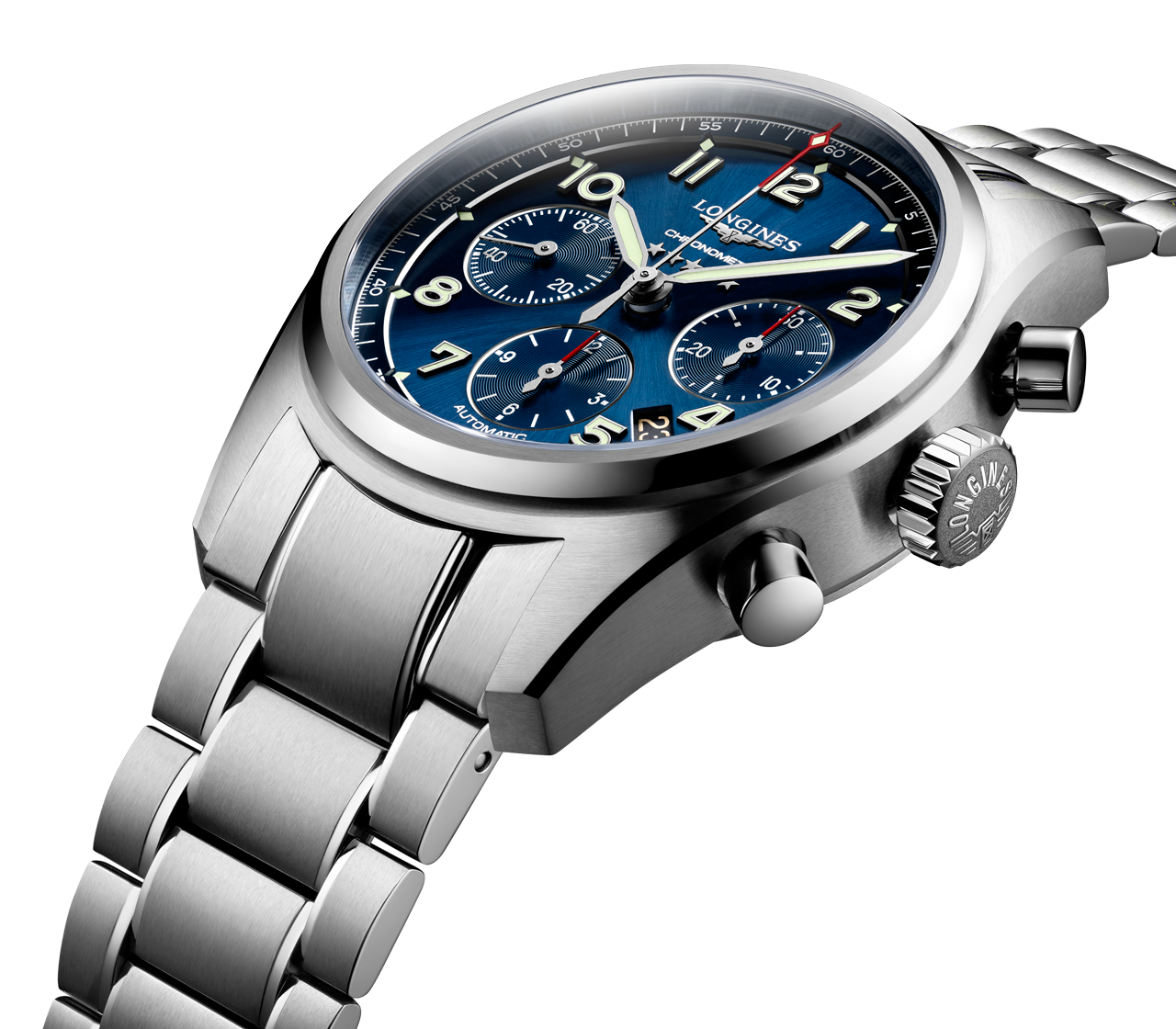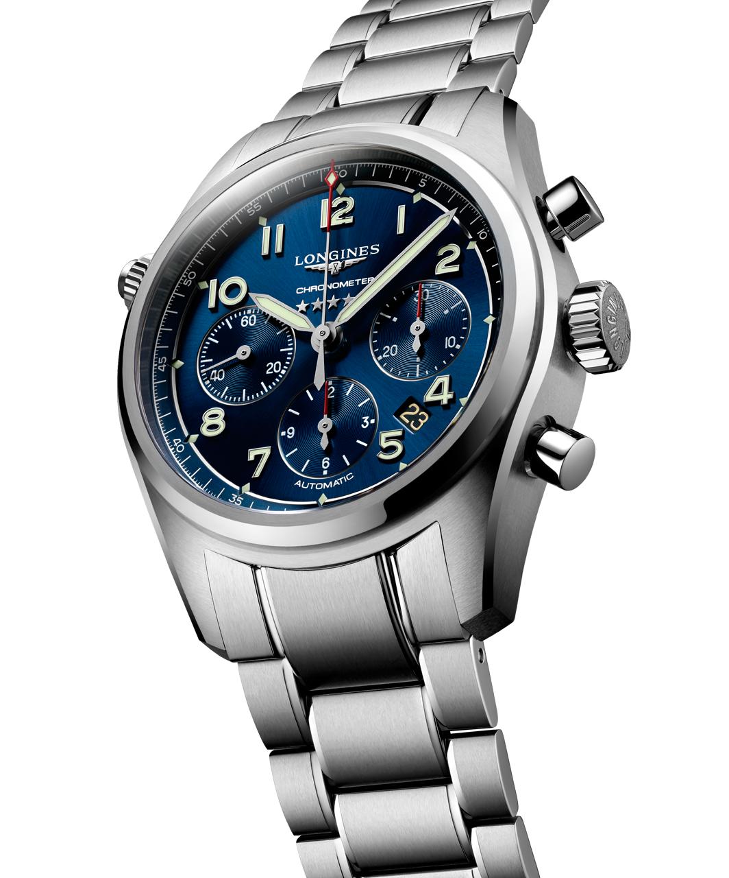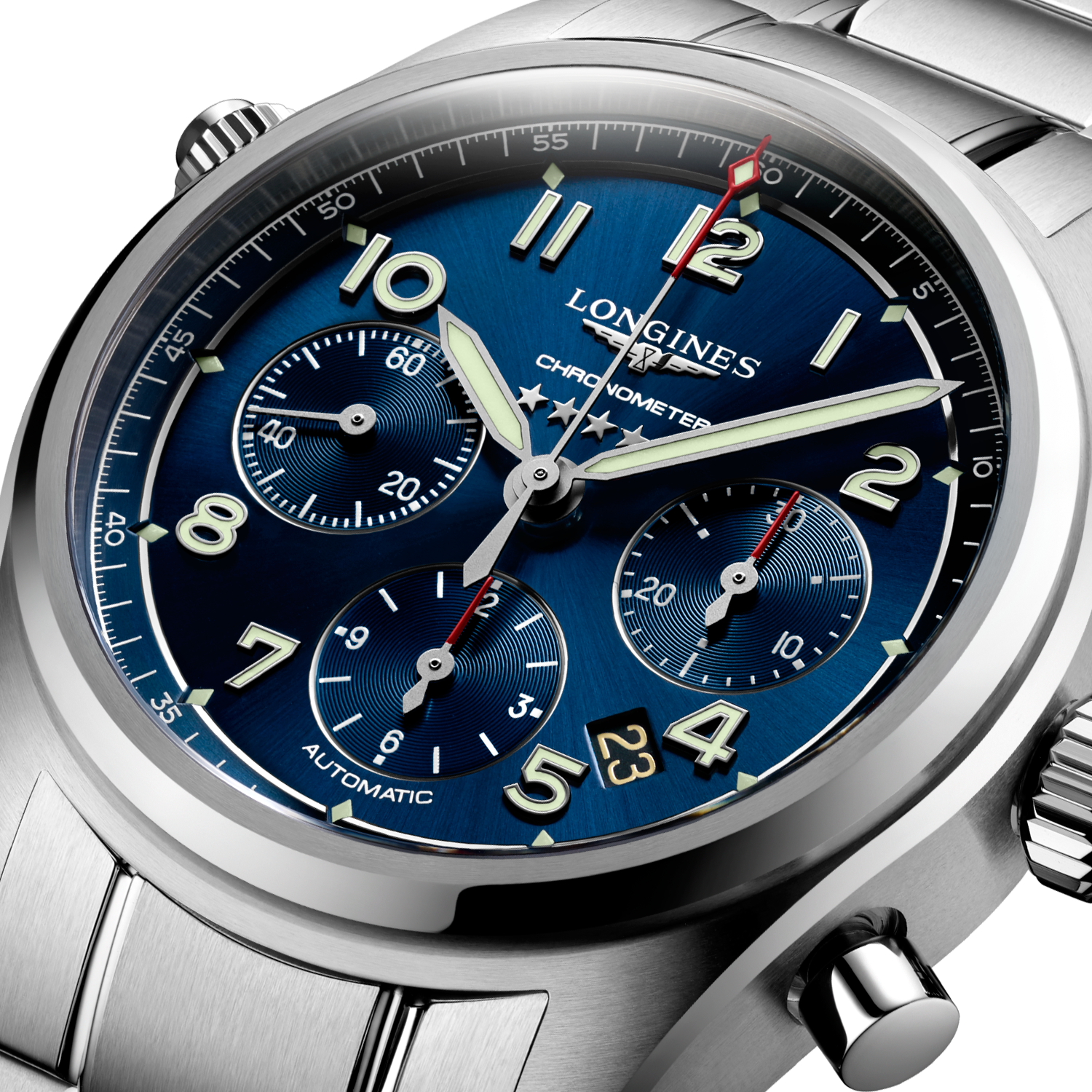 Die Longines Spirit Kollektion wurde im Stil der Uhren jener berühmten Pioniere designt, die sich bei ihren Eroberungen zu Lande, zu Wasser und in der Luft auf Longines Zeitmessinstrumente verlassen konnten. Legendäre Flieger und Entdecker wie Amelia Earhart, Paul-Emile Victor, Elinor Smith und Howard Hughes vertrauten bei ihren unglaublichen Reisen auf die Marke mit der geflügelten Sanduhr. Nun präsentiert Longines neue Zeitmesser, die von ihrem Pioniergeist zeugen. Eine Hommage an jene aussergewöhnlichen Männer und Frauen, die mit einem Rekord, einer Grosstat oder echtem Heldenmut Geschichte geschrieben und damit nachfolgende Generationen zu neuen Höchstleistungen angespornt haben. Alle Modelle der Longines Spirit Kollektion sind mit modernster Technologie versehen. Das Ergebnis: hochpräzise Uhrwerke, die durchweg als Chronometer zertifiziert sind. Longines Spirit 42 mm L3.820.4.93.6 mit blauem Zifferblatt und passendem Stahlband.