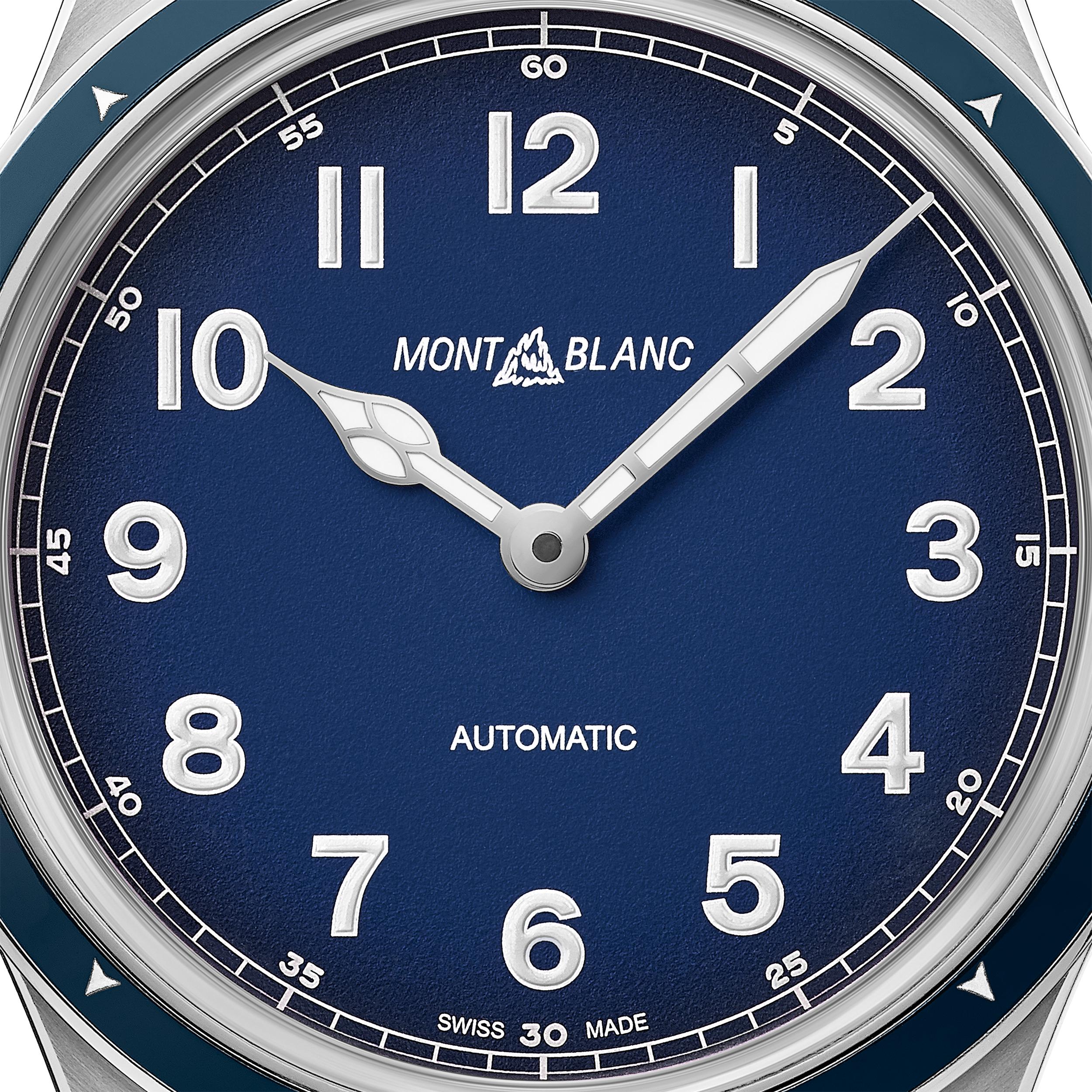 Die Montblanc 1858 Produktlinie ist von den legendären Minerva Profi-Uhren der 1920er- und 1930er-Jahre inspiriert, die zu militärischen Zwecken und für Entdeckungsreisen entwickelt wurden. Als Neuinterpretation dieser historischen Zeitmesser bringt die Montblanc 1858 Produktlinie das Abenteuer Bergsteigen zum Ausdruck – sie verkörpert den modernen Trend der Rückkehr zur Natur. Die neue Montblanc 1858 Automatic, die zu den reinsten Zeitmessern im Vintage-Stil gehört, zeichnet sich durch die blaue Farbgebung von Zifferblatt, Gehäuse und Armband aus. Das Gehäuse ist mit einer feststehenden Lünette aus Edelstahl ausgestattet, die mit passender glänzender blauer Keramik versehen ist und über eine Gravur der vier Himmelsrichtungen mit Leuchtbeschichtung verfügt. Die Montblanc 1858 Automatic besitzt ein 40-mm-Gehäuse aus Edelstahl mit schlanken geschwungenen Hörnern, die poliert und satiniert sind. In den Gehäuseboden der Uhr sind zudem eine Darstellung des Mont Blanc sowie ein Kompass und zwei gekreuzte Eispickel eingraviert, die einmal mehr auf die Welt des Bergsteigens und den berühmten Gipfel verweisen, der die Gründer der Maison Montblanc einst inspirierte. Vollendet wird die Uhr von einem passenden blauen Sfumato-Kalbslederarmband mit weißen Nähten.