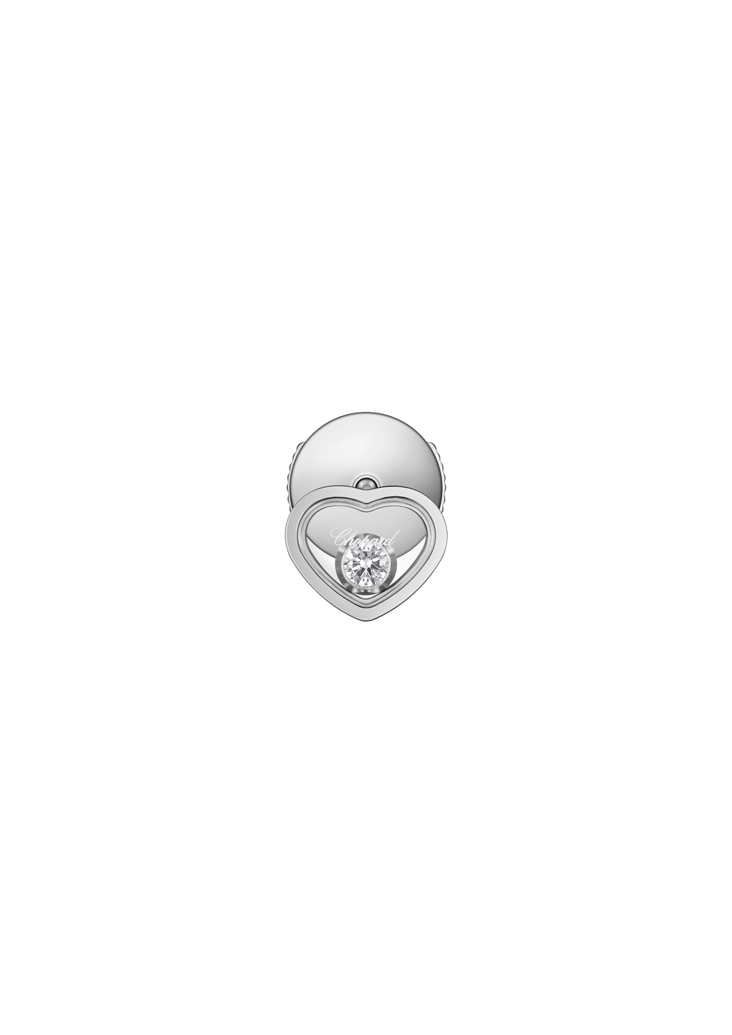 Die Schmuckkollektion My Happy Hearts übernimmt die bekanntesten Designcodes der legendären Chopard-Kreationen: das Herz und die beweglichen Diamanten. Die My Happy Hearts Diamant-Mono-Ohrringe mit den Herzmotiven sind zierliche Schmuckstücke, die als stylishe Accessoires einzeln oder miteinander kombiniert getragen werden können. Me, Myself and My Happy Hearts 83A086-1092: Zwei Ohrstecker aus 18 Karat Weißgold mit jeweils 0.05 Karat weißer Diamant.