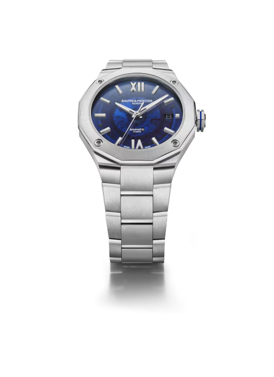 Angetrieben von dem renommierten hauseigenen Baumatic Kaliber, ist die Riviera 10616 die alltagstaugliche Schweizer Uhr schlechthin. Ein transparentes, blaues Saphirglaszifferblatt, ein auswechselbares Metallarmband und ein Sichtboden runden den sportiven Look des Swiss-Made-Zeitmessers ab.