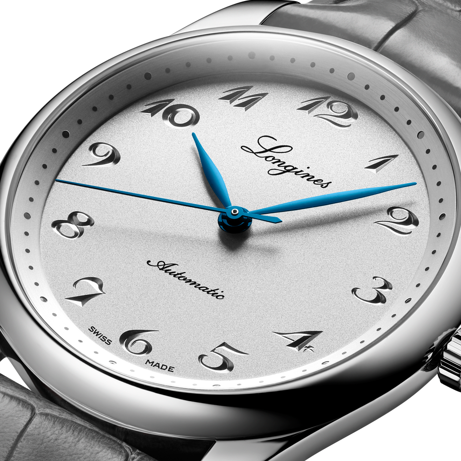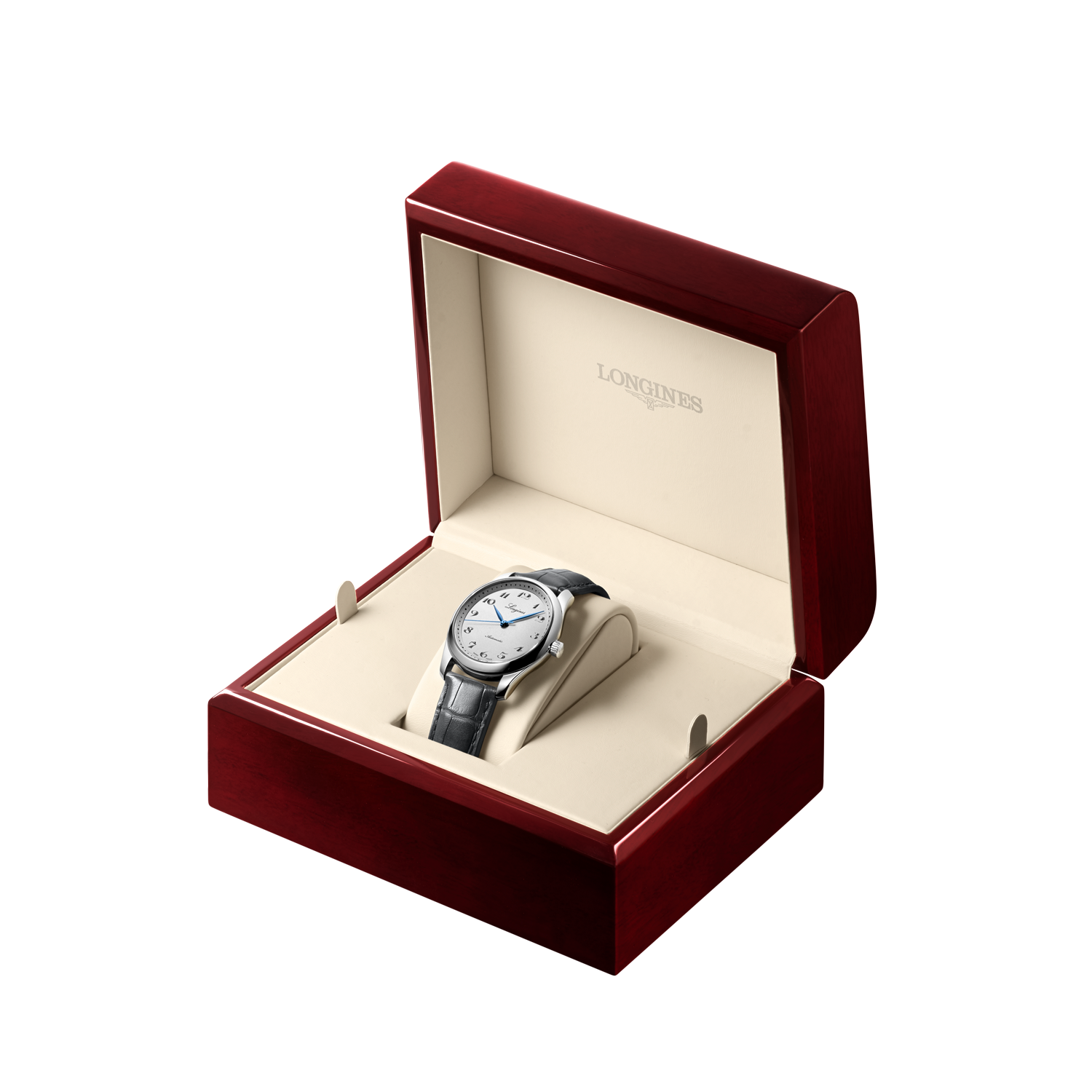 Anlässlich des 190-jährigen Jubiläums präsentiert Longines eine Reihe von exklusiven Zeitmessern aus der Longines Master Collection, die sich durch ihre sorgfältige Verarbeitung und die besondere Aufmerksamkeit für jedes Detail auszeichnen. Das sandgestrahlte, silberfarbene Zifferblatt zeichnet sich durch seine einzigartige Oberfläche und die fein gravierten arabischen Ziffern aus. Elegante Zeiger aus gebläutem Stahl geben die Stunden, Minuten und Sekunden an und betonen die raffinierte Schlichtheit des Zifferblatts. Das 40-mm-Gehäuse aus Edelstahl beherbergt ein exklusives Longines Uhrwerk mit einer Unruhfeder aus Silizium. Durch den transparenten Boden, der eine Gedenkgravur trägt, lässt sich die ganze meisterhafte Uhrmacherkunst dieses Kalibers bewundern. Ein weiches, anthrazitgraues Lederarmband rundet den Stil dieses hochwertigen Zeitmessers ab